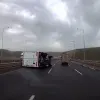 Kuzey Marmara Otoyolu'nun Kocaeli geçişinde seyir halindeki kamyonetin fırtına nedeniyle devrildiği anlar güvenlik kamerasına yansıdı.