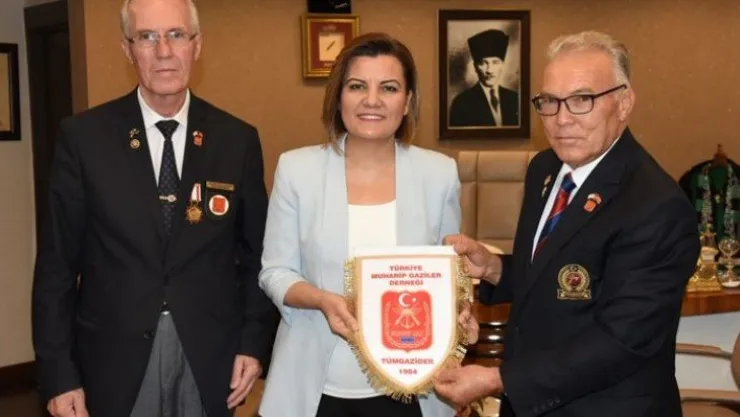 Kocaeli Muharip Gaziler Derneği Kocaeli Şube Başkanı Nurettin Recep Sağlık ve Genel Merkez Genel Sekreteri Emekli Astsubay Beyazıt Yumuk, İzmit Belediye Başkanı Fatma Kaplan Hürriyet’e nezaket ziyaretinde bulundular. Ziyarette Sağlık ve Yumuk, Başkan Hürriyet’e Muharip Gaziler Derneği’nin flamasını hediye etti.