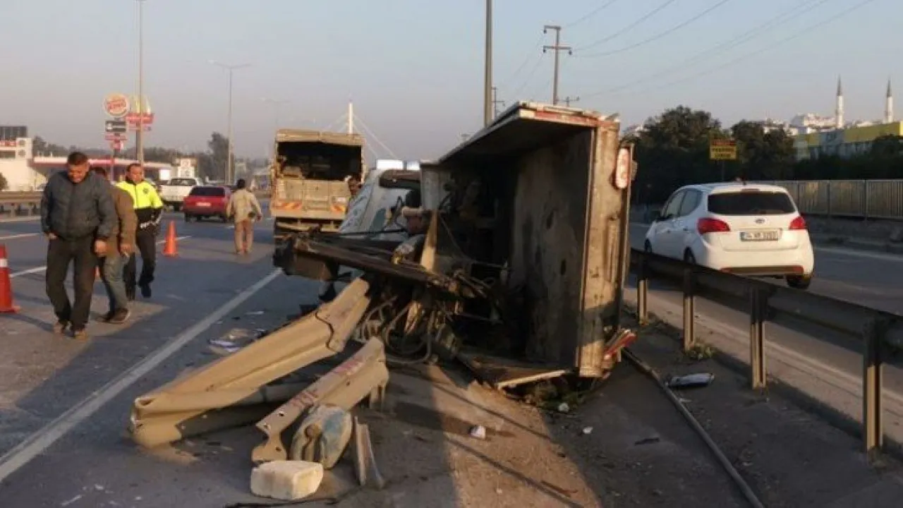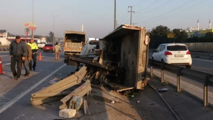 Gebze'de, iş makinesinin bariyerlere çarparak devrilmesi sonucu 1 kişi yaralandı.