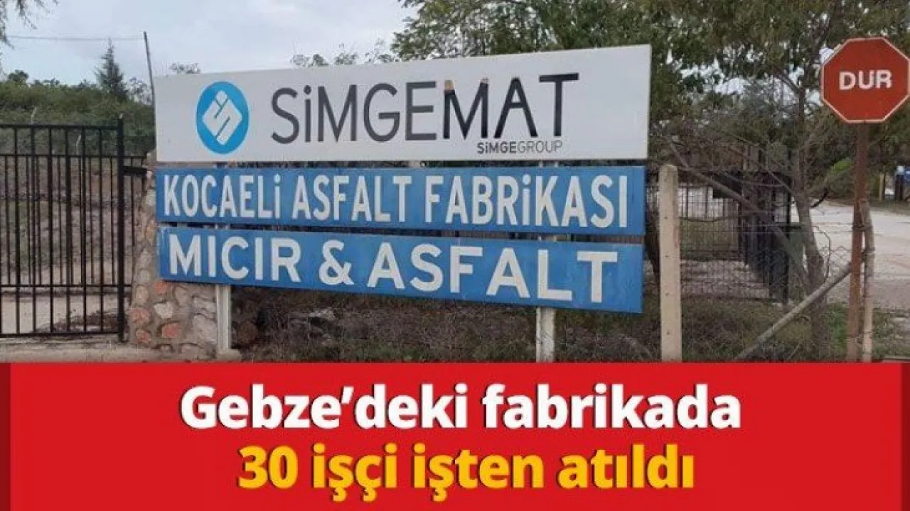Gebze'de bulunan Asfalt fabrikası olan Simgemat'ta 30 kişi işten çıkarıldı.