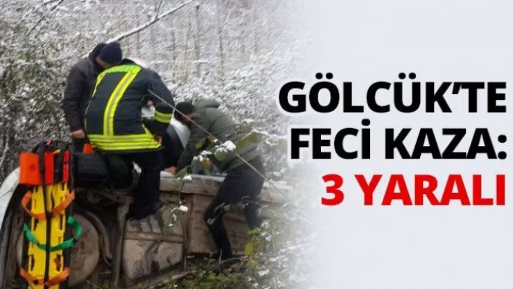 Gölcük'te karla kaplı yokuşta kayan otomobil, şarampole devrildi. Kazada 3 kişi yaralandı.