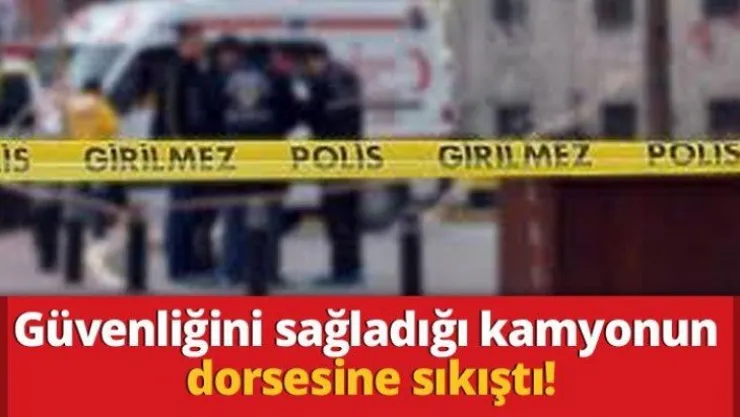 Güvenliğini sağladığı kamyonun dorsesine sıkıştı!