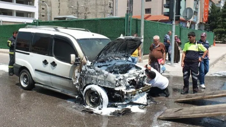 İzmit'te, Alemdar Caddesi çıkışında hareket halindeki hafif ticari araç aniden alev almaya başladı. Tüplü olan aracı sürücüsü terk ederken, itfaiye alevlere müdahale etti ve bu sırada patlama riskine karşılık yan yol trafiği kapatıldı.