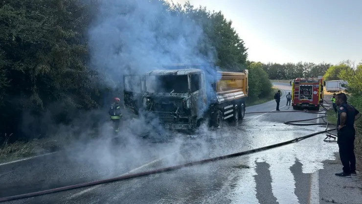 Olay, saat 18.00 sıralarında Kutluca Mahallesi Eski İstanbul Yolu’nda meydana geldi. Edinilen bilgilere göre, seyir halindeki hafriyat kamyonunda henüz bilinmeyen bir nedenle yangın çıktı. Dumanları fark eden sürücü aracı durdurarak dışarı çıktı. Kısa sürede büyüyen alevler yol kenarındaki otluk alana da sıçradı.