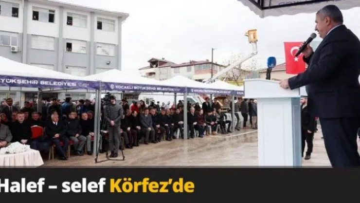 Kocaeli Büyükşehir Belediye Başkanı İbrahim Karaosmanoğlu ve Mart seçimlerinde yerini teslim etmeye hazırlandığı selefi Tahir Büyükakın Körfez'de çeşitli etkinliklere, ziyaretlere ve okulun spor salonu temel atma törenine katıldılar.