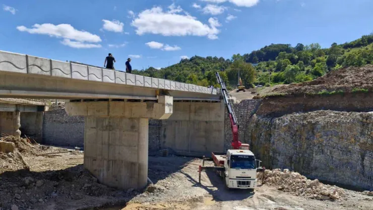 Köprüde 24 adet kiriş montajlarının tamamlanması sonrasında panel montajı ve köprü yaklaşım yolunda terasman çalışmaları yapılıyor.