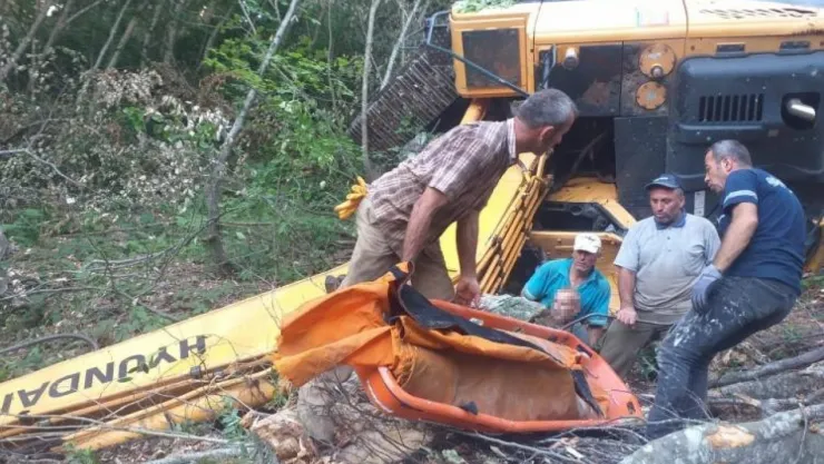 Kocaeli'nin Kartepe ilçesinde ormanda yol açma işlemi sırasında iş makinesi dik yamaçtan 50 metre uçtu. İş makinesi'nin altında kalan operatör yaralandı.