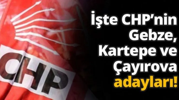 CHP'nin Gebze, Kartepe ve Çayırova adayları kesinleşti. Gebze'de Avukat Recep Dursun, Kartepe'de Cumhur Karadadılar, Çayırova'da Selahattin Kaya CHP'nin belediye başkan adayları oldu.