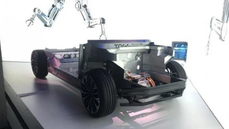Saatler sonra tanıtımı yapılacak yerli otomobilden ilk detaylar yerinde izleniyor. Etkinlik alanında bulunan yerli otomobilin şasesi dikkat çekiyor. 30 dakikanın altında hızlı şarj imkanı veren otomobil, 300 km ve 500 km menzil opsiyonlarına sahip.