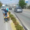 Kocaeli’nin İzmit ilçesi Salim Dervişoğlu Caddesi’nde tırpan ve form budama çalışması yapılıyor.