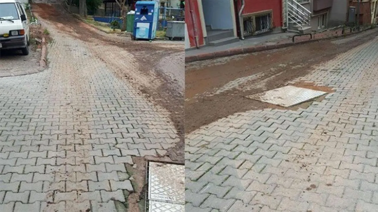 İSU’nun yaptığı çalışma sonrasında yola akan pis suyun temizlenmemesi mahallede tepkilere sebep oldu.
