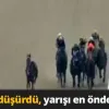 Jokeyini düşürdü, yarışı en önde bitirdi
