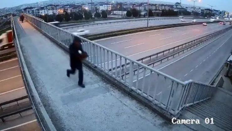 Öte yandan, olay anı ise güvenlik kamerasına yansıdı. Saniye saniye kaydedilen olayda İ.E. isimli şahsın üst geçitte yürürken, karşı yönden gelen kadının üzerine atlayarak çantasını zorla aldığı görülüyor. Yaşanan boğuşma sırasında kadın yere düşerken şahıs, çantayı zorla alıp koşarak uzaklaşıyor. Yerden kalkan kadın ise gaspçının arkasından koşuyor.