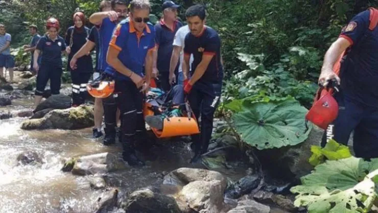 Kanyonda mahsur kalan yaralı 1 kilometre sedyeyle taşındı