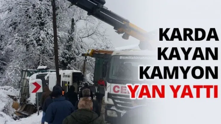 Karda kayan kamyon yan yattı