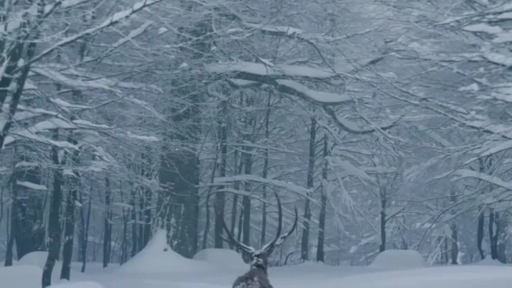 Karla kaplı Kartepe'de kızıl geyik güzelliği