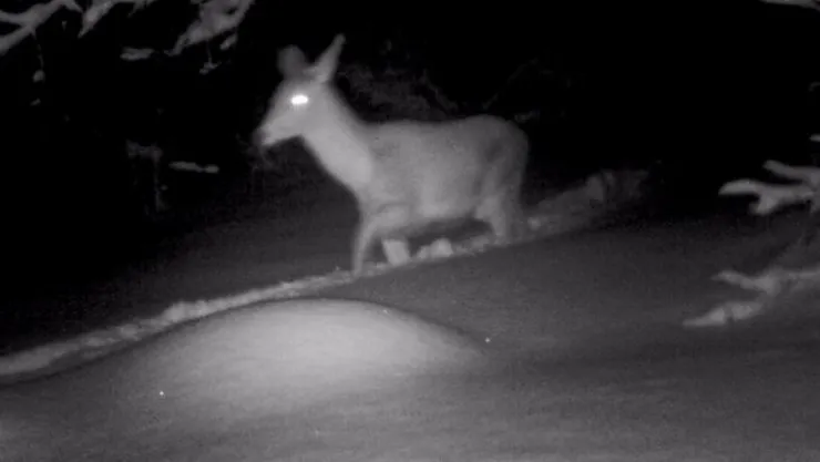 Kaydedilen görüntülere gece saatlerinde yürüyen geyikler ve ormanlık araziye bırakılan yemin etrafında gezen bir çakal yansıdı. Görüntülerde iki geyiğin karda yürüdüğü görülürken, çakalın da dakikalarca Doğa Koruma ve Milli Parklar Genel Müdürlüğü Kocaeli Şube Müdürlüğü ekipleri tarafından bırakılan yemin etrafında gezdiği görülüyor.