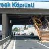 Kocaeli’nin Gebze ilçesi D100 karayolunda kasası açılan tır köprüye sıkıştı. Sürücü yaralanırken tırın kasası köprüye dik şekilde takılı kaldı.