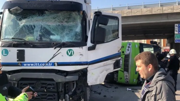 Kocaeli'de kavşakta tankerle çarpışan halk otobüsünün devrilmesi sonucunda meydana gelen kazada 25 kişi yaralandı. İtfaiye ekipleri tarafından otobüsten çıkartılan yaralılar çevredeki hastanelere kaldırıldı.