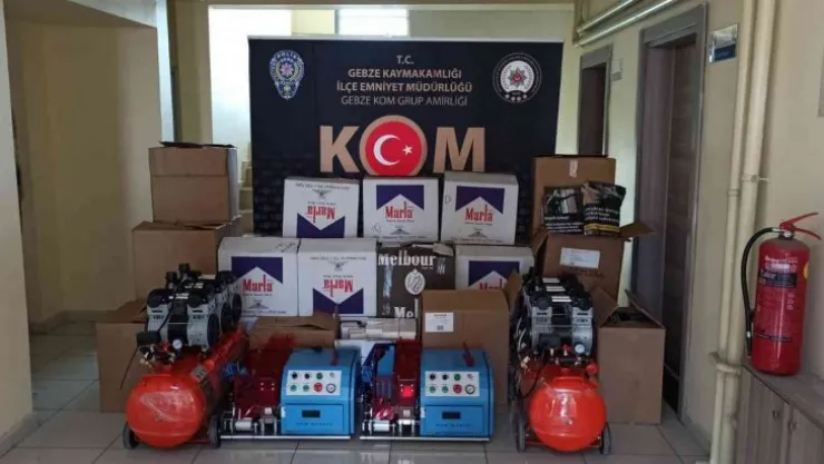 Edinilen bilgiye göre, polis ekipleri Gebze ilçesinde bulunan bir iş yerine operasyon düzenledi. İş yerinde yapılan aramalarda 255 bin 200 boş makaron, 21 bin 400 içi kıyılmış tütün ile doldurulmuş makaron, 600 paket kaçak sigara, 655 sökülmüş tütün bandrolü, 1 kilogramlık 37 paket bandrolü sökülmüş tütün, 25 kilogramlık açık kıyılmış tütün, sigara sarma makineleri ve kompresörler ele geçirildi. Olaya ilişkin 2 şüpheli gözaltına alındı.