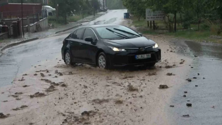 Kocaeli'de aniden bastıran yağmur sürücülere ve vatandaşlara zor anlar yaşattı. Şiddetli yağmur sebebiyle toprak ve taşlar yola aktı.