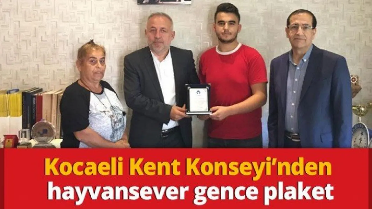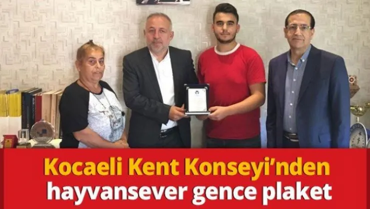 Kocaeli Kent Konseyi'nden hayvansever gence plaket