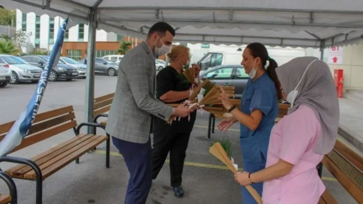 Ülkü Ocakları bugün de pandemi döneminde büyük bir özveri ile mücadele eden sağlık çalışanlarına teşekkür etmek amacıyla otomobillerine çiçek bıraktı.