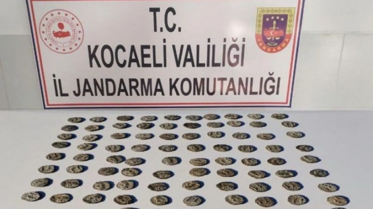 Kocaeli'nin Kandıra ilçesinde jandarma ekiplerince durdurulan iki araçta yapılan aramalarda 100 adet tarihi eser sikke ile yakalan 7 kişi gözaltına alındı.