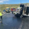 Kontrolden çıkan tır yan yattı: Kimyasal madde yola saçıldı