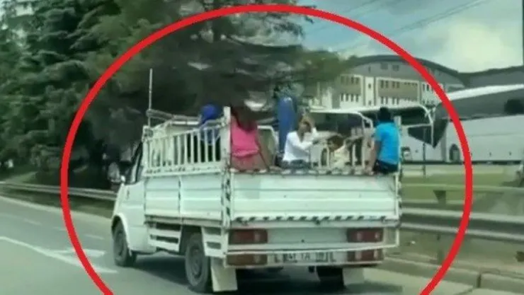 Körfez ilçesi D-100 Karayolu'nda seyir halinde olan kamyonetin kasasının kapağına oturan çocuklar ölüme davetiye çıkarttı. Yürekleri ağza getiren olay, vatandaşlar tarafından saniye saniye görüntülendi