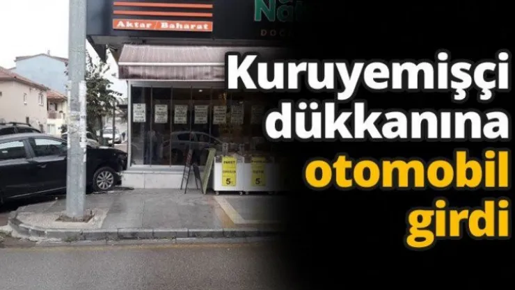 Körfez Tütünçiftlik Yeni Yalı Mahallesi'nde Ağadere Caddesi'nde direksiyon hakimiyeti kaybolan otomobil kuruyemişçi dükkanına girdi.