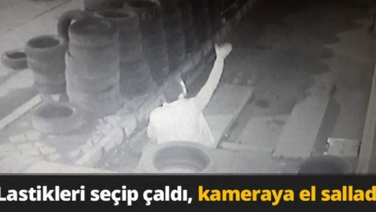 Olay, dün gece saatlerinde, Gölcük Sanayi Çarşısı 56. Sokak'ta meydana geldi. Otomobil ile bir lastikçinin önüne gelen kişiler, sigara yakıp, cep telefonunun ışığını açarak işyerinin önündeki ikinci el lastikleri kontrol etti. Şüphelilerden biri, ebatlarına göre seçtiği 10 lastiği, yanındaki kişi ile birlikte araca yükledi. Şüpheli, bu sırada güvenlik kameralarını fark etti. Kameraya el sallayan şüpheli ve yanındaki kişi araçla uzaklaştı.