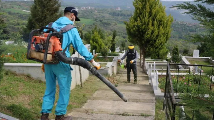 Kocaeli Büyükşehir Belediyesi, Park ve Bahçeler Dairesi Başkanlığı bayram öncesi mezarlıklarda temizlik çalışması başlattı.