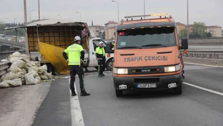 Kocaeli’nin Derince ilçesinde TEM Otoyolu İstanbul istikametinde mısır yüklü kamyonet yola devrildi. Sürücü kazayı yara almadan atlatırken, yol kısa süreliğine trafiğe kapandı.