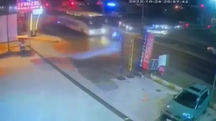 Öte yandan, kaza anı ise saniye saniye güvenlik kamerasına yansıdı. Görüntülerde, kavşaktan dönmek isteyen motosiklet sürücüsüne hızla gelen yolcu otobüsünün çarptığı görülüyor.