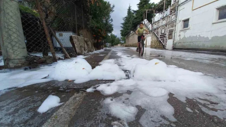 İzmit ilçesinde dün etkili olan sağanak sonrası sokak ve caddeler su içinde kaldı. Aniden bastıran yağmur hayatı olumsuz etkilerken, Sanayi Mahallesi Mezbaha Caddesi köpükle kaplandı. Caddede oluşan köpük baloncukları arasında araçlar ilerlemekte zorluk çekti. Aynı caddede bugün de manzara değişmedi. Yağmurun ardından caddeyi tekrar köpükle kaplandı. Köpüğün sebebi ise bilinmiyor.