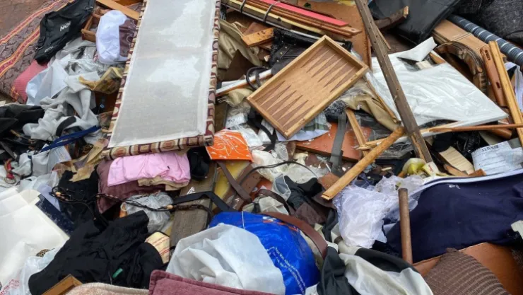 Bugün İzmit Belediyesi Temizlik İşleri Müdürlüğü ekipleri de eşyaları kaldırmak için çalışma başlattı. Balkondan atılan eşyalar kepçe yardımıyla alınarak, sokak temizlendi.