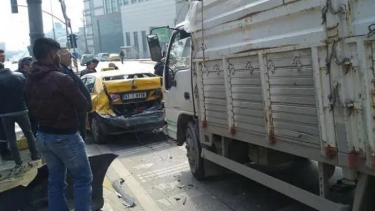 İzmit santral rampasının başında bulunan trafik ışıklarından geçmeye çalışan bir otomobille başka bir araç çarpıştı.