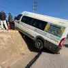 Yaralananın olmadığı kaza nedeniyle bölgeye polis ekipleri sevk edildi. Asılı kalan minibüs, çekici yardımıyla bulunduğu yerden kaldırıldı.