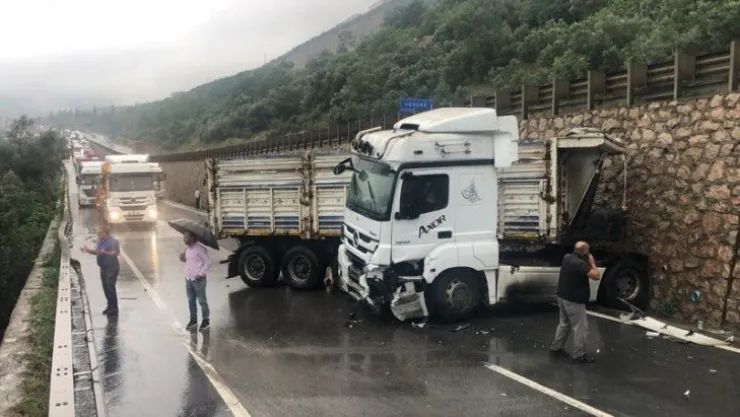Sağanak yağışın sebep olduğu kaza D-100'ü trafiğe kapattı