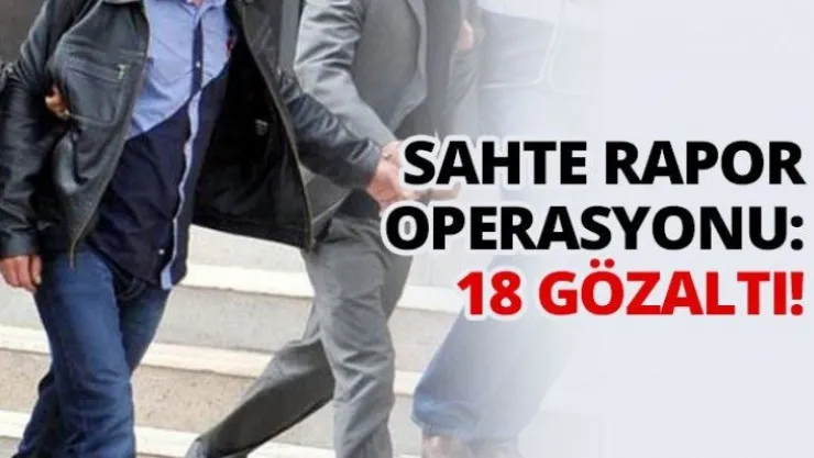 Operasyonda sahte sağlık raporu düzenleyerek kamu kurum ve kuruluşlarını zarara uğrattıkları iddiasıyla 18 şüpheli gözaltına alındı. Gözaltına alınan şüphelilerin emniyetteki işlemlerinin devam ettiği bildirildi.