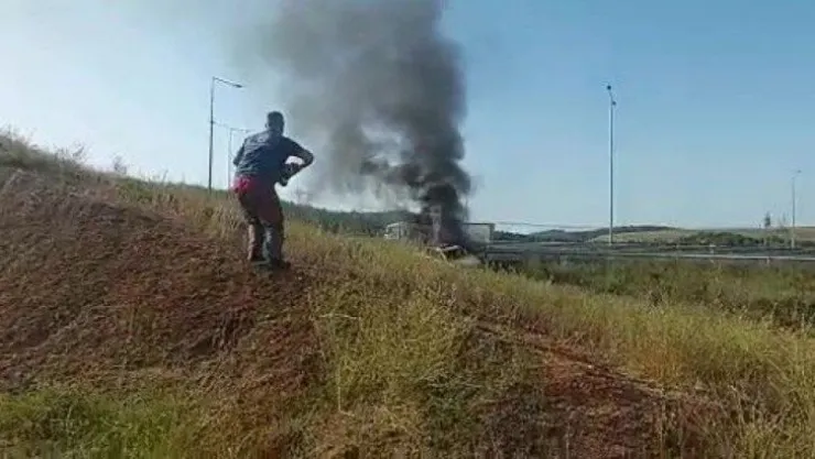 Gebze ilçesi Kuzey Marmara Otoyolu'nda bariyerlere çarpıp şarampole yuvarlanan araç, alev alev yandı. Otomobilin sürücüsü ise bu kazadan yara almadan kurtuldu