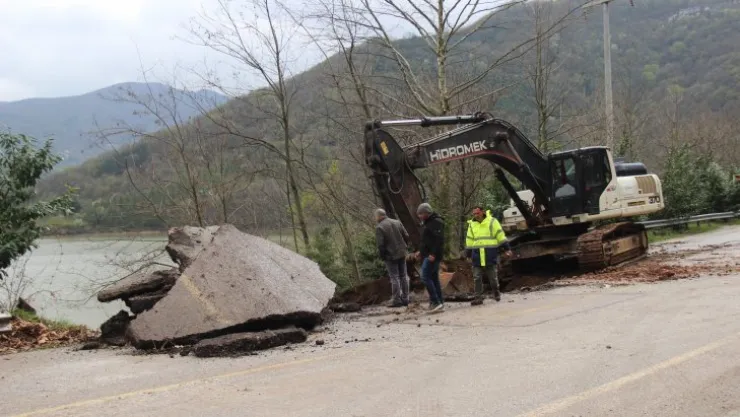 Kocaeli'nin Başiskele ilçesinde dün akşam saatlerinde etkili olan yağış, Yuvacık Baraj yolunda heyelana sebep oldu. Heyelan sebebiyle çöken yolda olumsuzluk yaşanmaması için ekiplerin çalışmaları sürüyor.