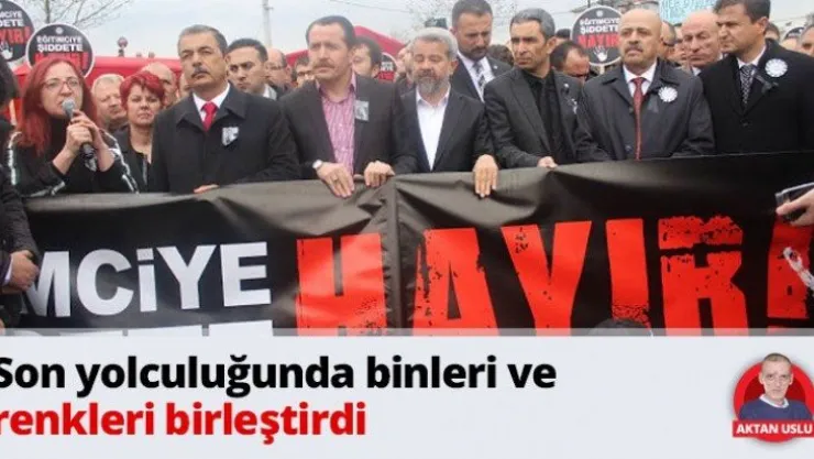 Görev yaptığı okulda, aynı okulun öğrencisi F.Ç tarafından bıçaklanarak öldürülen meslek şehidi, Müdür Yardımcısı NecmeddinKuyucu son yolculuğuna Gebze’den mahşeri bir yürüyüş ve törenle uğurlandı. Ülke genelinde tüm eğitim camiasını sarsan yürüyüş eğitim iş kolunda farklı görüşlerdeki dört sendikanın genel merkez yöneticilerini bir araya getirdi. Kuyucu’nun üyesi olduğu Eğitim Bir-Sen ve Memur-Sen Konfederasyonu Genel Başkanı Ali Yalçın, Türk Eğitim-Sen Genel Başkan Yardımcısı Musa Akkaş ve Genel Merkez Yöneticisi Selahattin Dolgun, Eğitim-Sen Genel Başkanı Feray Aytekin Aydoğan, Eğitim-İş Sendikası Genel Başkanı Orhan Yıldırım ile dört sendikanın şube ve temsilciliklerden yönetici ve üyelerle birlikte binlerce öğrenci ve vatandaş okula 500 metre kadar mesafedeki Eşref Bitlis Parkı’ndan şehit öğretmenin adının yaptığı okulun önüne sessiz bir matem yürüyüşü yaptı. Yürüyüşün ardından Ali Yalçın, Musa Akkaş, Orhan Yıldırım ve Feray Aytekin Aydoğan saldırıyı protesto eden konuşmalarında (detayları gelecek) Bakanlık yetkililerini göreve davet etti.
