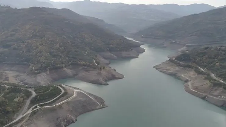 Su seviyesi düşen baraj havadan görüntülendi