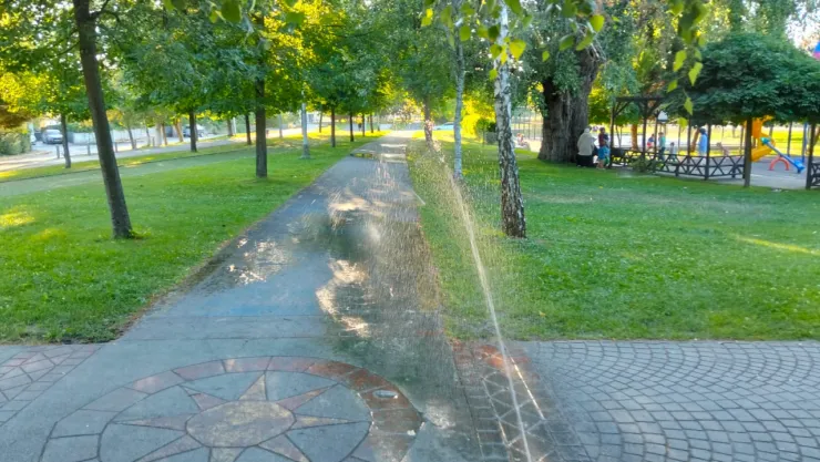 Sulama değil israf. Burası Kartepe Şehit Kamil Akgün parkı. Daha önce de bu sorun basına iletildi fakat çözüm bulunmadı. Şu israfı alenanen ortada. Tam da vatandaşın piknik yaptığı saatte sulama sisteminin devreye girmesi ayrı bir sorun. Bisiklet yolunun sulanacak bisikletçilerin riske edilmesi ayrı bir sorun.
