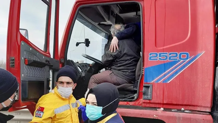 Olay, Kartepe ilçesine bağlı Suadiye Mahallesi'nde meydana geldi. Edinilen bilgiye göre, Ahmet Altın (65) yönetimindeki tır, sürücüsünün direksiyon başında fenalaşması neticesinde bariyerlere çarptı. Kartepe Belediyesi Zabıta Müdürlüğü’ne bağlı ekipler rutin devriye görevi sırasında fenalaşan sürücüyü fark etti. Sürücüye müdahale eden ekipler, 112 Acil Çağrı Merkezi'ne ihbarda da bulundu. Kısa sürede olay yerine gelen sağlık ekipleri, Ahmet Altın’a ilk müdahaleyi yaparak hastaneye götürdü.
