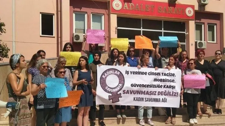 Körfez'de TEM Otoyolu kenarında faaliyette bulunan bir iş yerinde yaşandığı iddia edilen ve çalışan bayan personelin, amiri tarafından tacize uğramasıyla ilgili ilk duruşma gerçekleşti. Duruşma öncesinde Körfez Adliyesi'ne gelen ve 'Kadın savunma ağı' adı verilen platforma dahil olan kadınlar, S.A. adlı davacı kadına destek verdiler.