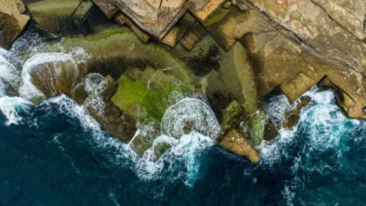 Denizin kıyısında ilginç şekilleri ile ilgi çeken kayalıklar vatandaşların akınına uğruyor. Drone ile görüntülenen kayalar kartpostallık görüntüler oluşturdu.