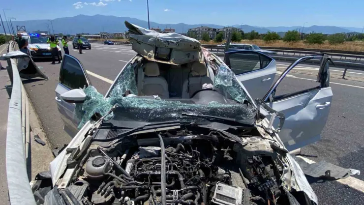 TEM Otoyolu’nun Kocaeli geçişinde bariyere çarpan otomobilin tavanı koptu. Kazada aynı aileden 4 kişi yaralandı.
